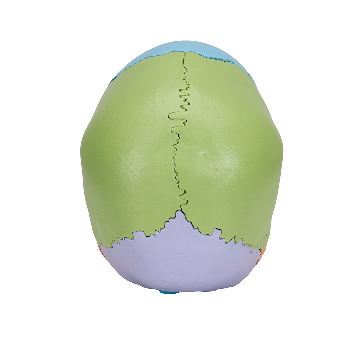 В обучающих целях для облегчения распознавания разные части черепа окрашены устойчивой краской в девять цветов, при этом парные кости выполнены в одном и том же цвете.