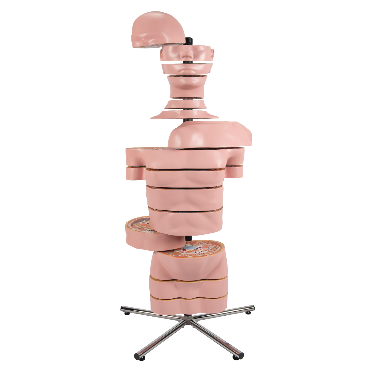Этот необычный торс является ценным пособием для всех профессиональных групп, занимающихся созданием образа ультразвуковой, компьютерной и магнито-резонантной томографии. Очень полезно для студентов при изучении анатомии и патологии. Торс горизонтально разделен на 15 частей. На каждом сечении показано топографическое взаимодействие в виде цветного рельефа. Каждый диск можно смещать горизонтально, а также вращать вокруг оси. Каждый слой можно снимать отдельно.