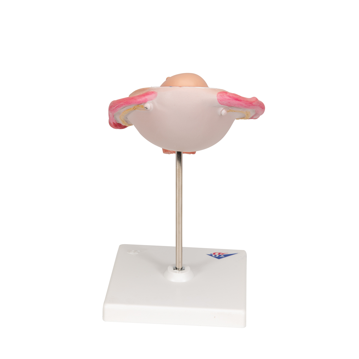 Эта модель показывает ягодичное предлежание плода на пятом месяце беременности. Все важные анатомические структуры маркированы.