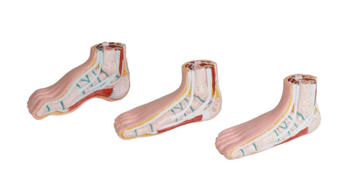 Данная модель демонстрирует нормальную стопу, стопу с высоким подъемом и стопу с плоскостопием. Длина модели составляет примерно ½ натуральной величины. На стопах демонстрируются кости, мышцы, связочный аппарат.