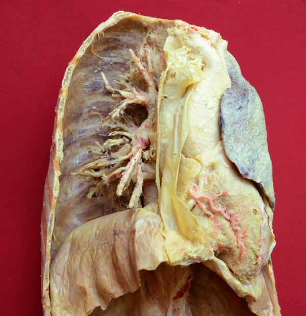 VC-8A | Комплекс внутренних органов с инъецированными артериями | Коронарные артерии и вены сердца, артерии внутренних органов брюшной полости инъецированы окрашенной полимерной массой. Смотри также Ангионеврология |