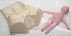 Тренажер представляет собой пластмассовый усеченный торс женщины без брюшной стенки, с тазовыми костями и мягкой половой щелью. Кукла, имитирующая плод, имеет мягкую пластмассовую головку, тельце выполнено из ткани с набивкой мягким наполнителем.