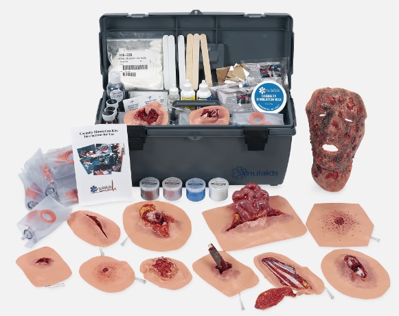 Тематические накладки с различными повреждениями для размещения на манекене или стандартизированном пациенте, в комплекте с принадлежностями для грима