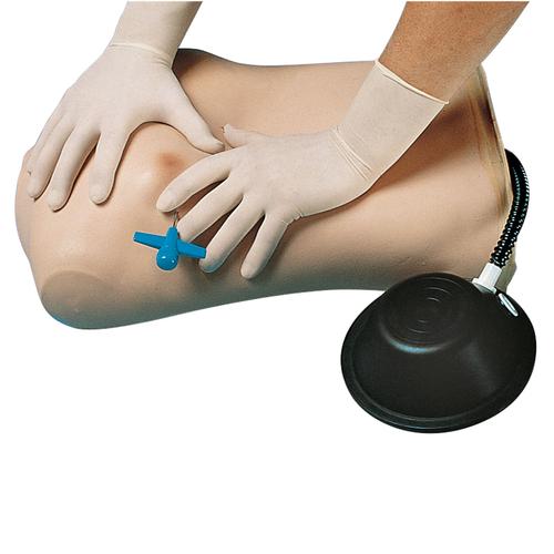 Рекомендуется для демонстрации, обучения, тренировки успешных мероприятий по лечению пневмоторакса при помощи этого тренажёра. Он состоит из имитации грудной клетки, в чью заменяемую плевральную полость при помощи ножного насоса можно закачать воздух. Правильное размещение канюли при проколе плевры и дренаж воздуха из плевральной полости можно тренировать очень реалистично. Возможна пункция и торакотомия во втором межребёрье по среднеключичной линии и в пятом межребёрье подмышечной линии. Поставляется с ножным насосом, сменной плевральной полостью и сумкой для переноски, без канюлей и игл для пункции.