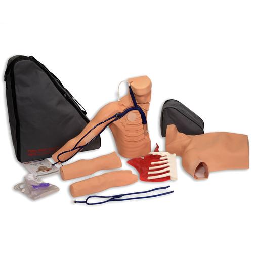 Аттестация, поддержание, демонстрация и повышение квалификации персонала, ответственного за проведение внутривенных инъекций, приобретает критическую важность при управлении расходами. Имитаторы внутривенного доступа признаны наиболее эффективным средством обучения и аттестации персонала. Оценивайте, изучайте и отрабатывайте опыт, нужный для установки периферически вводимого центрального венозного катетера, посредством этого тренажера: • Тренажер представлен в положении лежа на спине, рука согнута под углом 90 градусов по отношению к телу • Подвижный подбородок имитирует перекрытие яремной ямки • Анатомически точное изображение головной, основной и медиальной основной подкожных вен руки, яремной вены, подключичной вены и верхней полой вены • Пальпируемые ребра позволяют подбирать катетер необходимой длины • Съемная кожа руки дает возможность увидеть вены • Возможность установки стандартного внутривенного катетера • Дистальный конец катетера можно видеть в верхней полой вене • Возможность введения жидкости в вены подтверждается обратным током крови из иглы