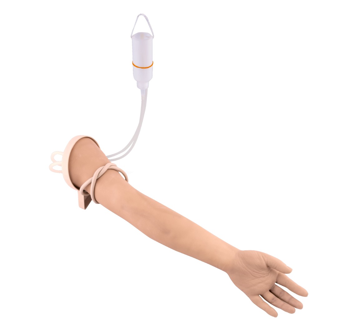 Фантом представляет собой точно выполненную модель руки с топографией кожи и пальпируемыми венами.