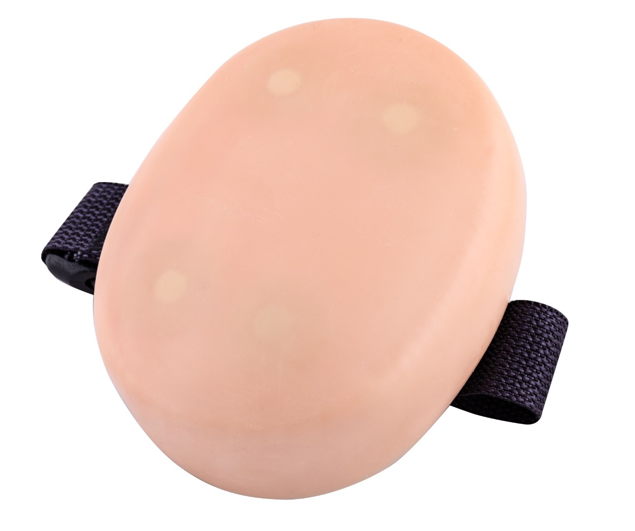Накладка визуально и пальпаторно имитирует кожу и мягкие ткани человека, установленана пластину, защищающую студентов от травм. Точно передает тактильные ощущения при выполнении инъекций.