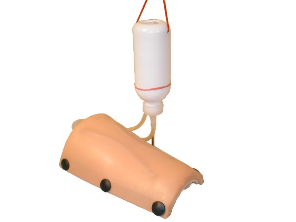 Накладка представляет собой модель части руки в области локтевой ямки. Изготовлена из материалов визуально и пальпаторно имитирующих кожу, мягкие ткани и вены. Точно передает тактильные ощущения при выполнении внутривенных инъекций.