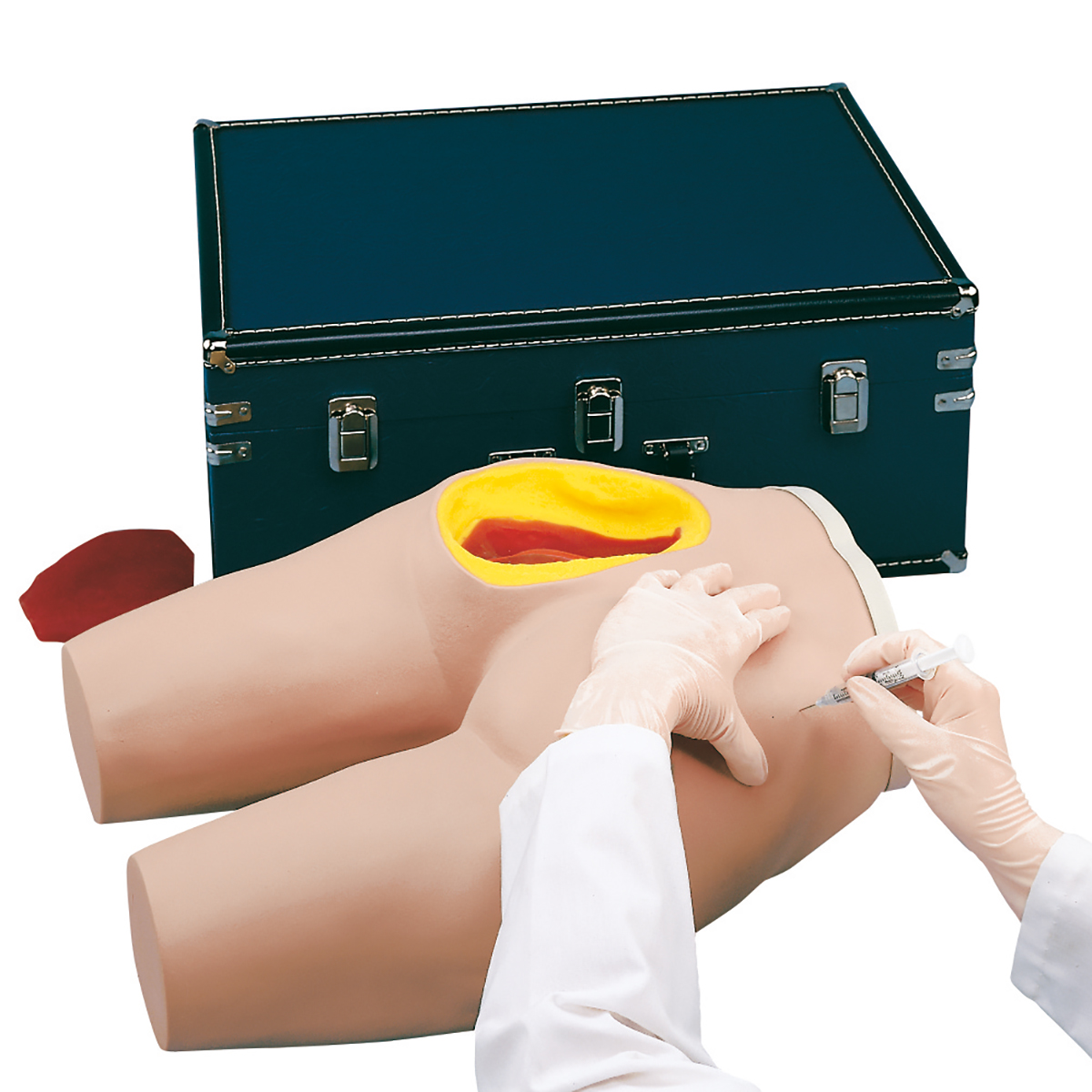 Это идеальный «доброволец» для обучения начинающих студентов-медиков проведению внутримышечных инъекций. Тренажер для обучения технике внутримышечных инъекций Life/form® подходит для демонстраций в классе или практических занятий в группах любого размера, позволяя приобрести как визуальный, так и тактильный опыт. В туловище располагаются муляжи костных структур, в частности верхней части бедренной кости, или большого вертела, а также задней верхней и передней верхней ости подвздошной кости и крестца. Пальпируя анатомические ориентиры на костных структурах, студенты учатся правильно отыскивать место инъекции. Фрагмент верхненаружного квадранта левой ягодичной области срезан таким образом, чтобы были видны нижележащие структуры. Хорошо видны средняя и большая ягодичные мышцы, седалищный нерв и сосудистые образования. Этот тренажер позволяет изучить три типа внутримышечных инъекций: заднеягодичные, переднеягодичные и в широкую латеральную мышцу бедра. Подобно другим тренажерам и макетам Life/form®, тренажер для освоения навыков внутримышечных инъекций очень реалистичен. Кожа и мышечные ткани, а также форма и положение костных структур полностью соответствуют анатомии живого человека. В результате при перфорации тканей тренажера иглой возникают такие же ощущения, как при выполнении настоящей инъекции. Тренажер поставляется вместе с учебным пособием, набором шприцев и жестким футляром для переноски.