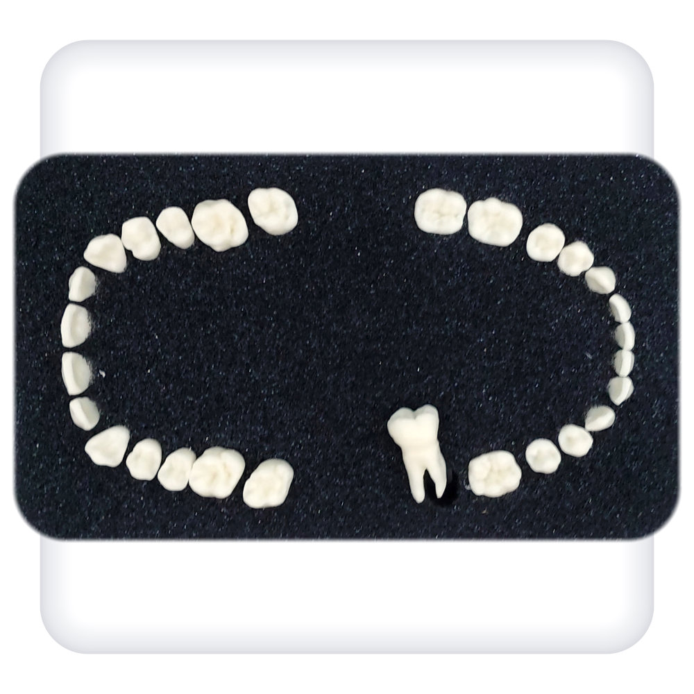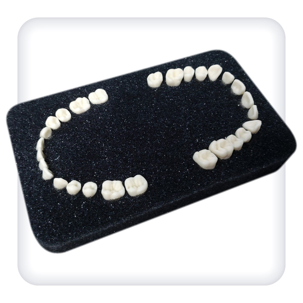 Данный комплект представляет собой набор из 28 интактных зубов для отработки базовых навыков по препарированию. Модели зубов имеют анатомически точное строение и выполнены из полимера, по механическим и физическим характеристикам приближенного к свойствам натуральных зубов.