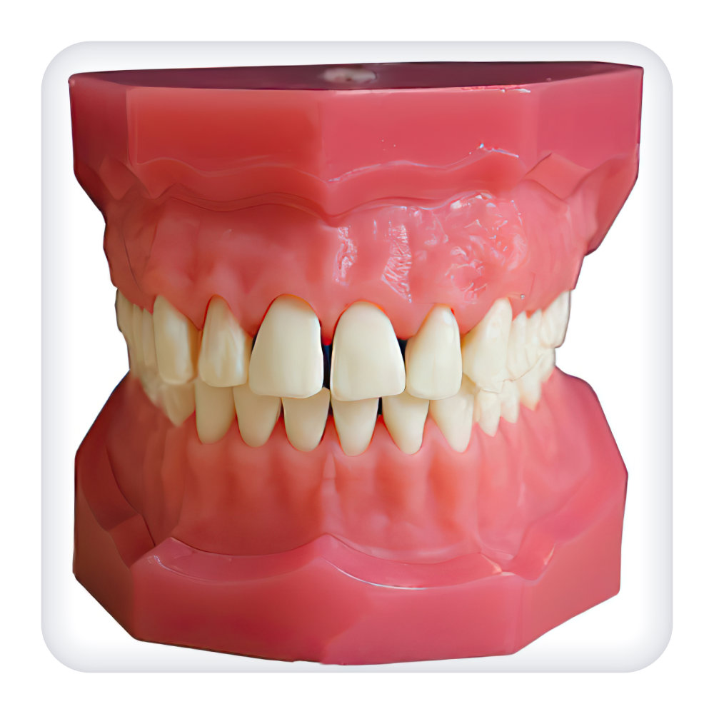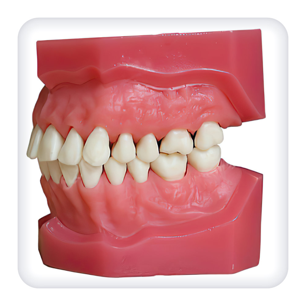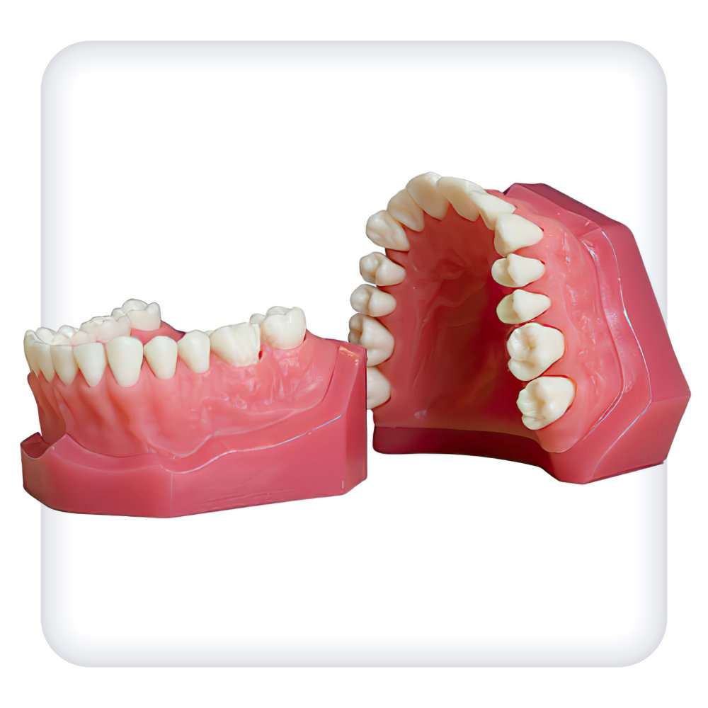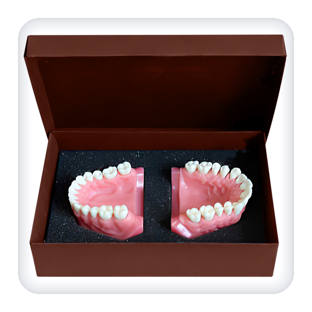 Представляет собой стоматологическую модель верхней и нижней челюстей. Анатомически соответствует зубочелюстному аппарату взрослого пациента. Смыкание реализовано в стабильной окклюзии. В комплект включены 28 модельных зубов.