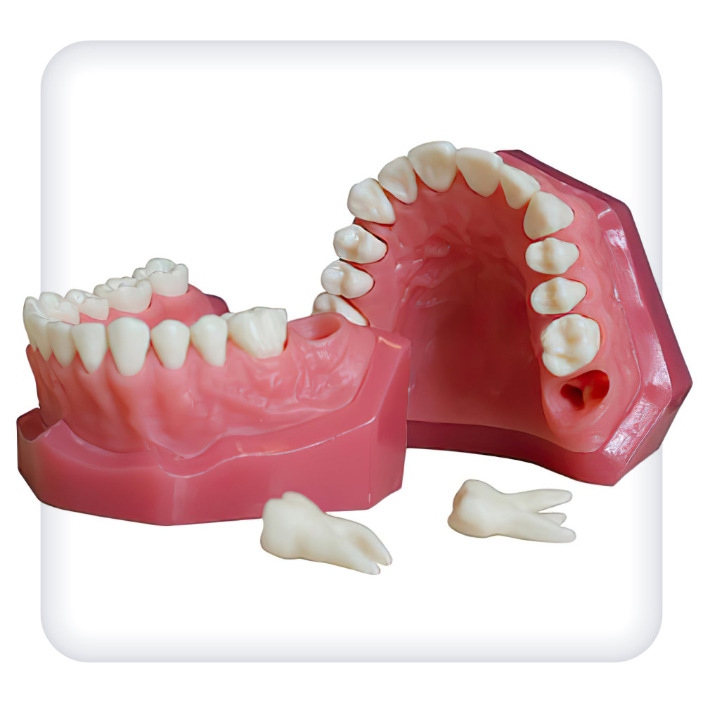 Модель предназначена для освоения хирургических навыков по удалению зуба. Эргономичная система крепления позволяет легко установить модель в окклюдаторе и тренажере.