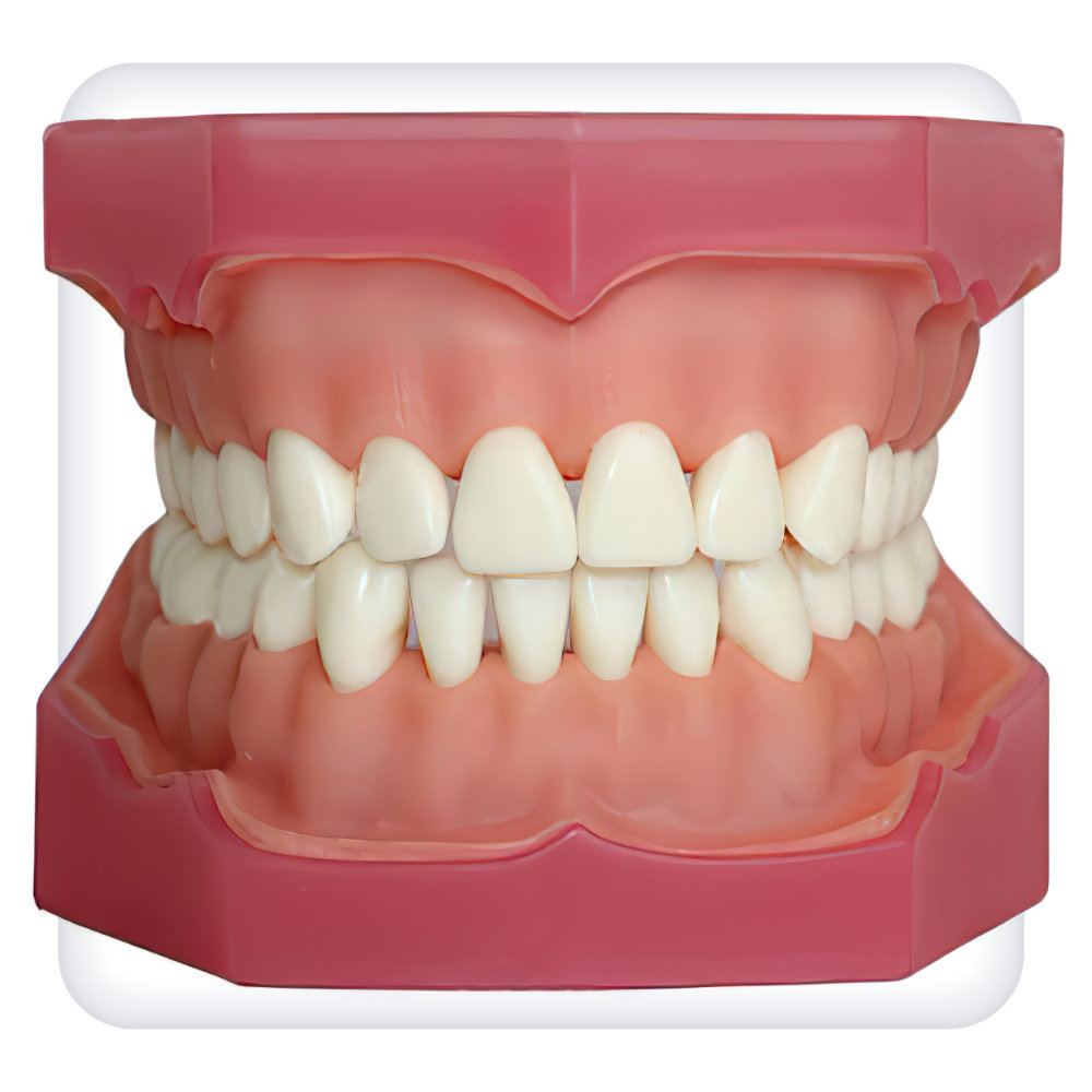 Представляет собой стоматологическую модель верхней и нижней челюстей с эластичной десной.