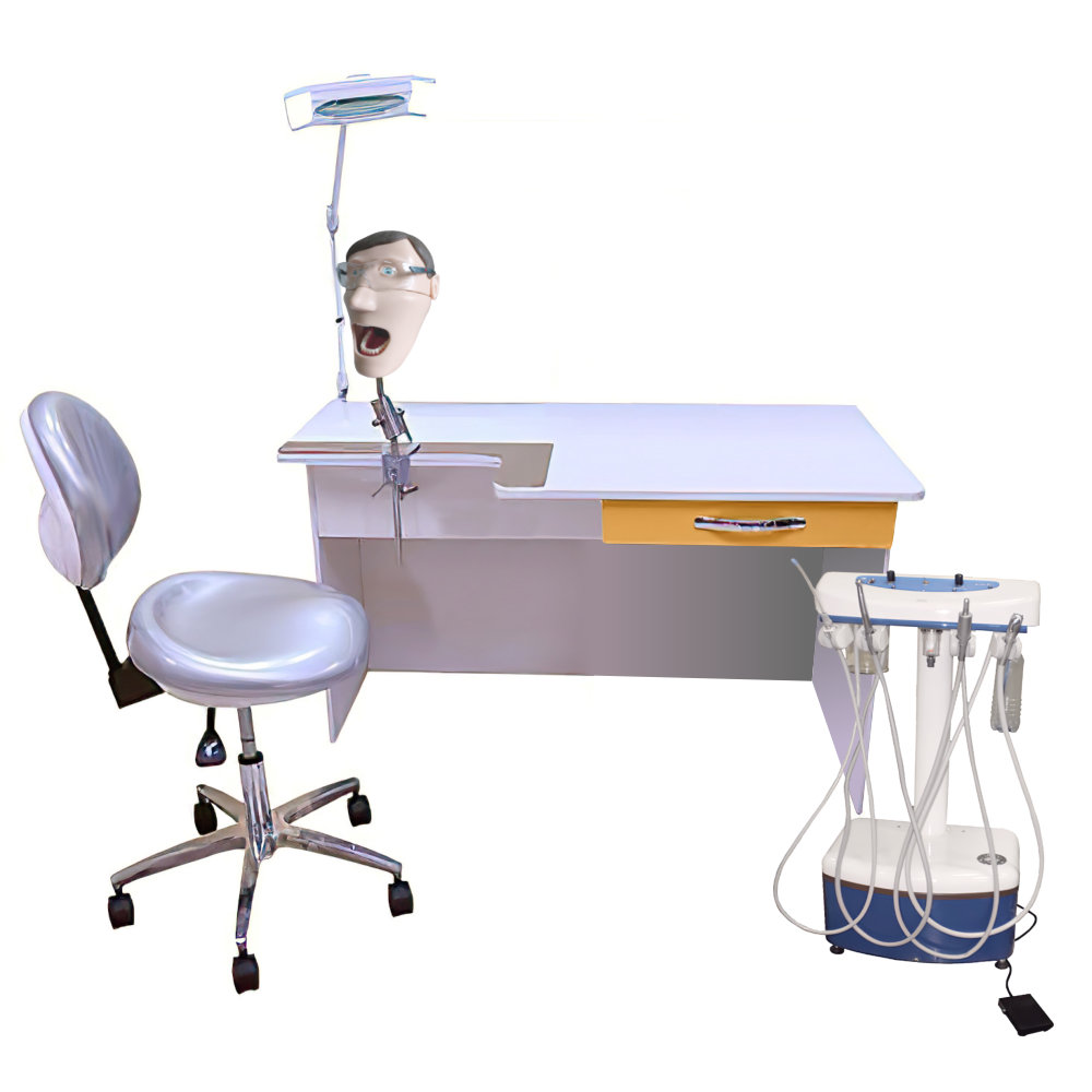 Мобильная стоматологическая установка cо встроенным компрессором, оснащенная реальным стоматологическим инструментарием.